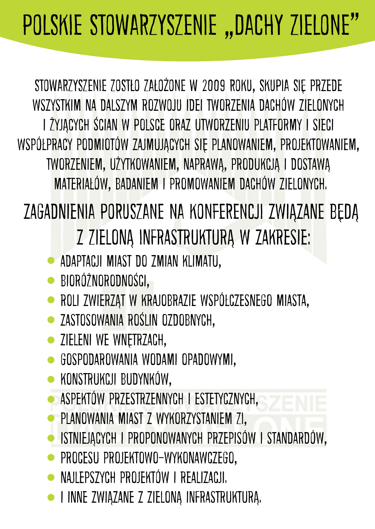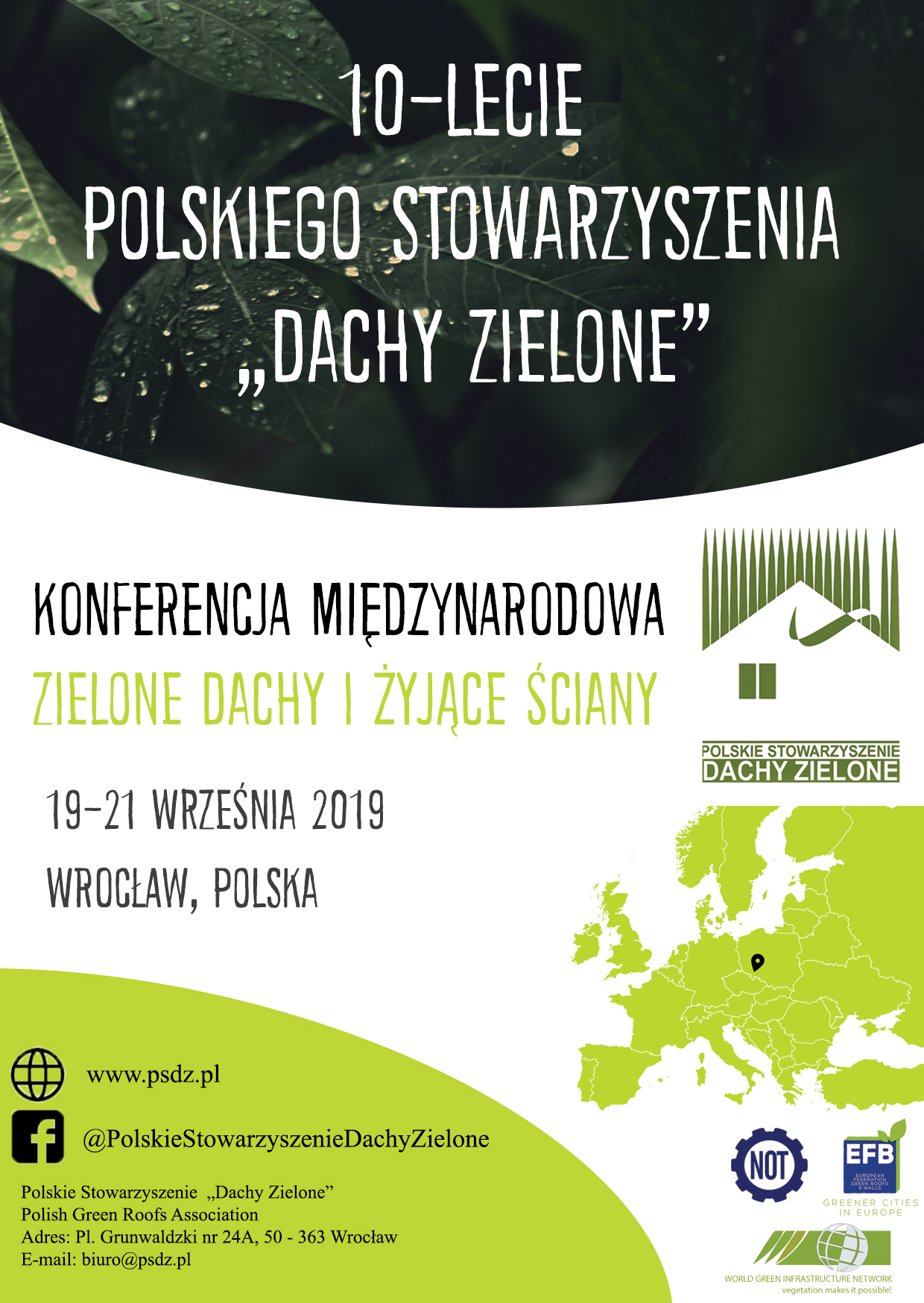 Szanowni Państwo, mamy przyjemność ogłosić iż w dniach 19-21 września 2019 roku we Wrocławiu, z okazji 10-lecia Polskiego Stowarzyszenia „Dachy Zielone” odbędzie się Międzynarodowa Konferencja Naukowa dotycząca zielonych dachów i żyjących ścian.