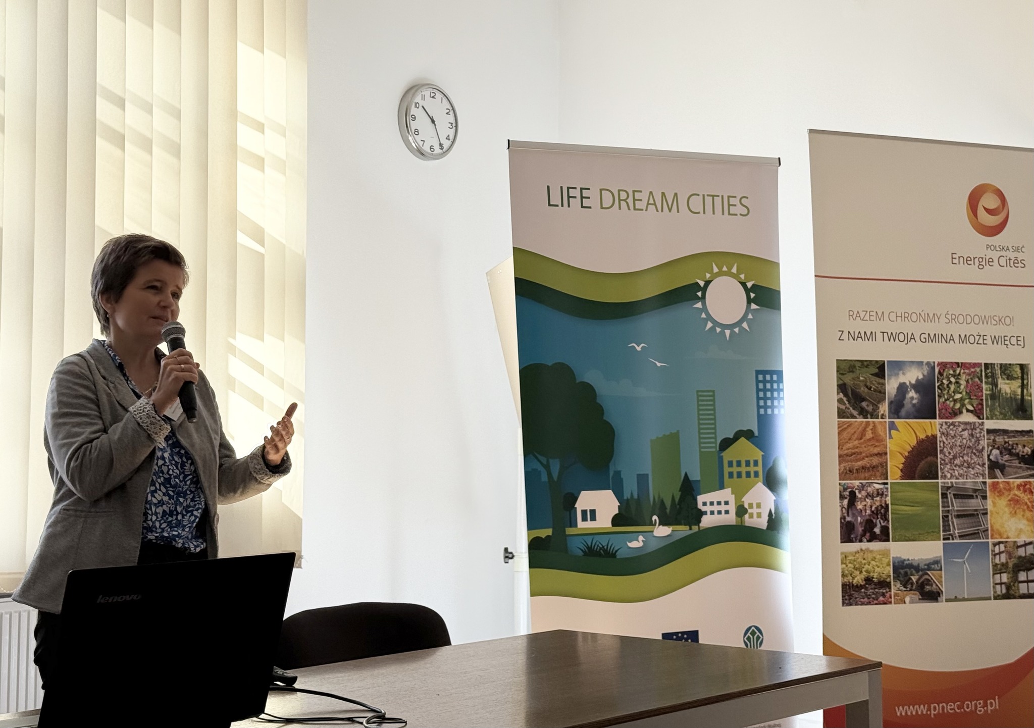 22.09.2025 r. w Krakowie podczas konferencji "Praktyczne aspekty adaptacji miast do zmiany klimatu", którą zorganizowało Stowarzyszenie Gmin Polska Sieć „Energie Cités” w ramach projektu LIFE Dream Cities wystąpiła dr hab. inż.